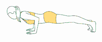 Если Вам сложно поначалу держать упор с вытянутым в струну телом, то ноги согнув в колени можно опустить на пол (стопы перекрещены, смотрят вверх). В данном случае упор будет на колени а работа происходить с верхней частью корпуса без подключения ног.