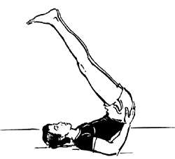 Если сложно оторвать поясницу от пола, то поначалу практикуйте Асану просто с вытянутыми прямыми ногами вверх.